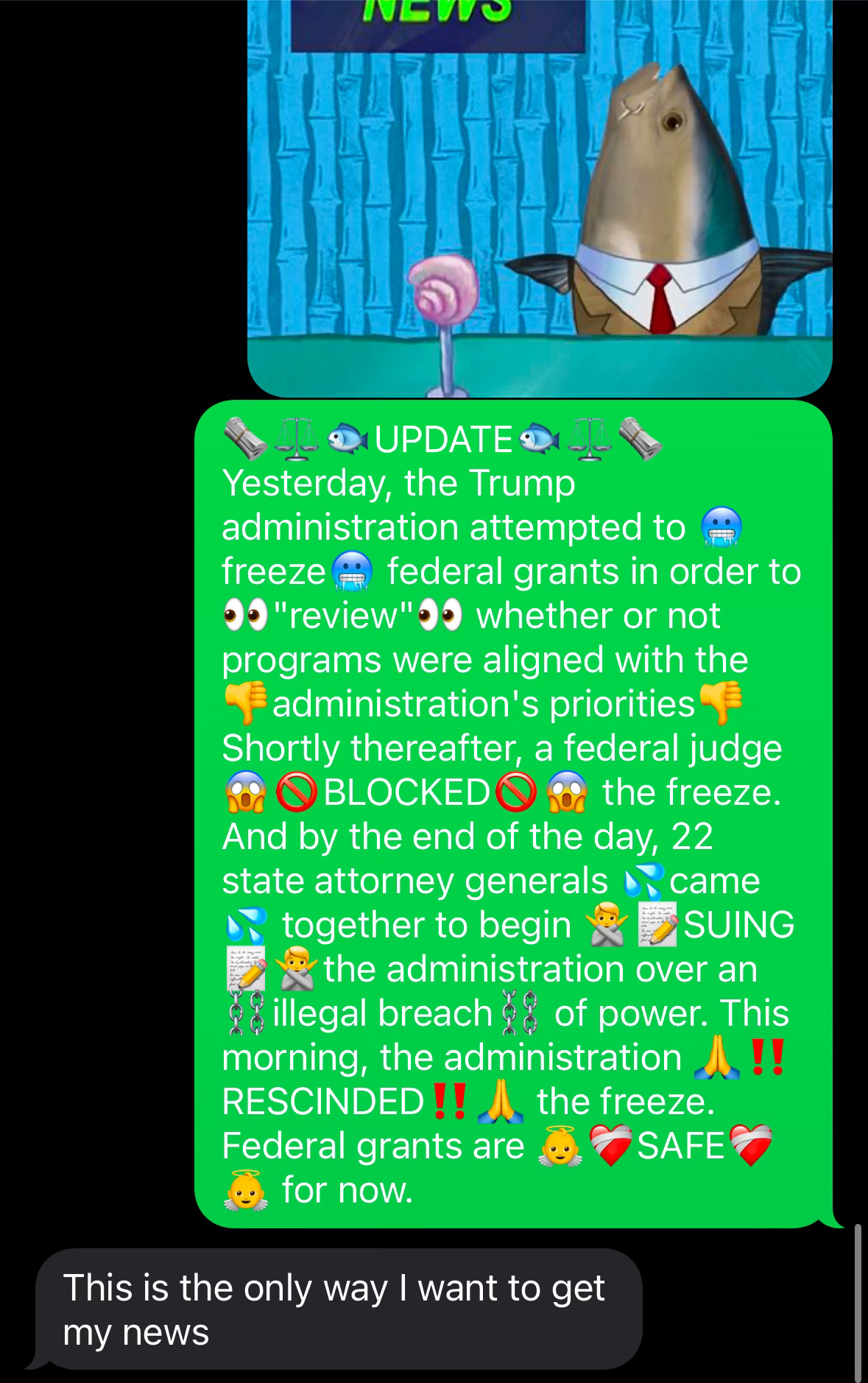 I decided to start this newsletter because I spent the last day keeping my close friends up to speed on the Federal Finance Freeze that the goons in White House tried to threaten. I’ve been teasing through the purpose of such a threat. I mean, prior to the Orange Cumrag taking office, I really thought that like…surely, he was all talk. Right? Like after 2016, he sure SAID a lot. Did anything get done? Other than appointing conservative judges to the Supreme Court, I can’t think of anything that he really did during his term. But this term doesn’t feel like the last one. It has an air of…horror. Anyway, the reason I was so compelled to share updates with folks regarding the freeze threat is because I work for a non-profit organization that essentially operates on grants from the Department of Housing and Urban Development (HUD). Most client and service related costs come out of Housing Opportunity for People with AIDS (HOPWA) grants, but my salary comes from a different HUD grant that still very well would’ve been (and still could be) impacted by grant cuts from HUD.