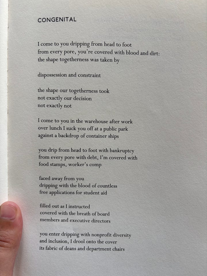 Left from the drafts: “READ PET SOUNDS, IDIOT.” Lmao. I have this collection of poetry that was once awarded the Lambda Literary Award for like…Best Bisexual Poetry, or something? I wanted to grab something a little less popular than Emily Dickinson or Jericho Brown or Chen Chen or like idk any other Big Name Poet. Obscure poets are fun to explore! So, without further ado: Stephanie Young is an American poet, activist, and scholar. She lives in Oakland, California (source). For our final day of Pride Month, I bring to you a poet of the bisexual and Marxist persuasion. We sure love our bisexual Marxists, don’t we?